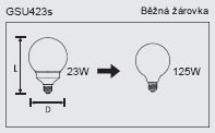 Dnes jim svítí MEGAMAN GSU423s, 23W, E27 - DorS DIMMING. Barevné podání má asi stejné jako ten Philips, najíždí ale rychleji. Kulička v lustru rodičů vypadá ještě lépe než předchozí baňka. Světlo je příjemně rozprostřené po místnosti. Krom toho má dvě unikátní vlastnosti: